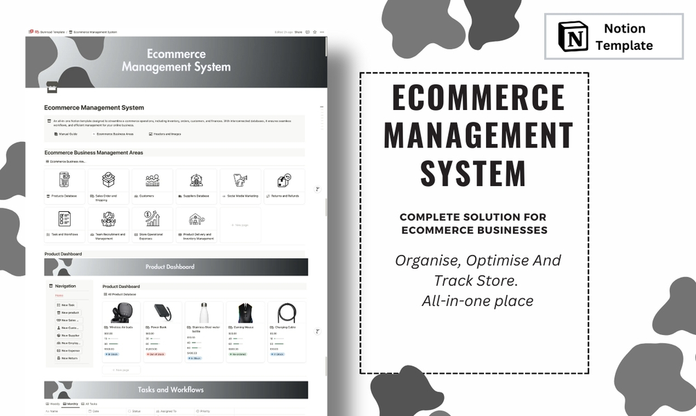 Tired of juggling multiple tools for order tracking, inventory, marketing, and finances? This Notion-powered Ecommerce Management System brings everything into one streamlined dashboard β helping you stay on top of operations, increase sales, and scale effortlessly.