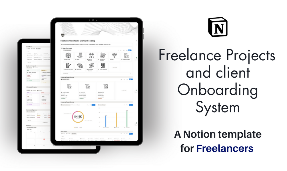 The Freelance Projects and Client Onboarding System is a fully connected Notion template designed to help freelancers, consultants, and solo service providers manage their entire freelance business from one organized dashboard — without relying on multiple apps, spreadsheets, or disconnected notes.