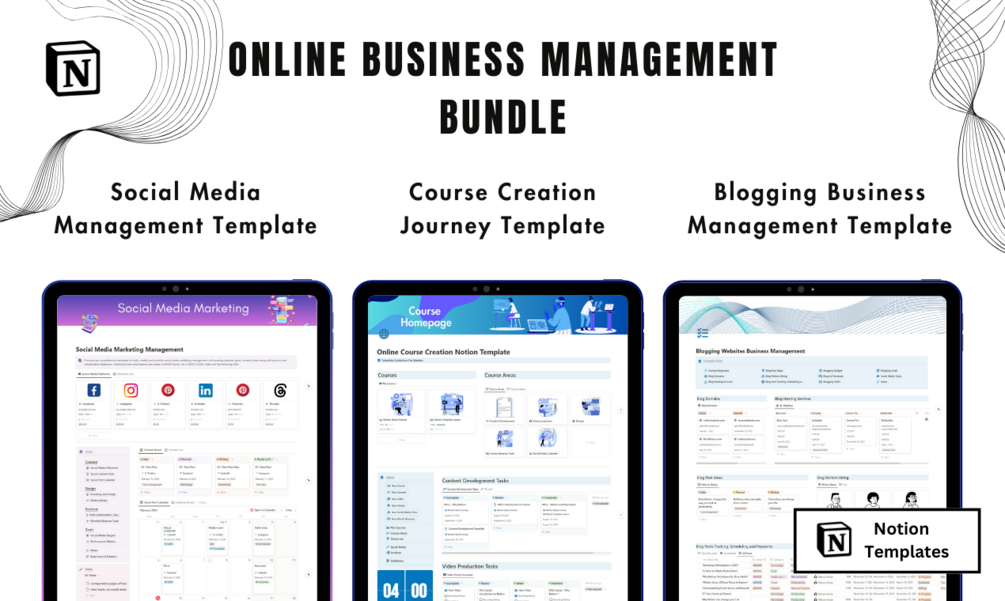 Welcome to the ultimate solution for online entrepreneurs! Our Online Business Management Bundle empowers you to efficiently manage your blogs, create engaging online courses, and streamline your social media marketing. Elevate your online business management with a comprehensive suite of Notion templates.