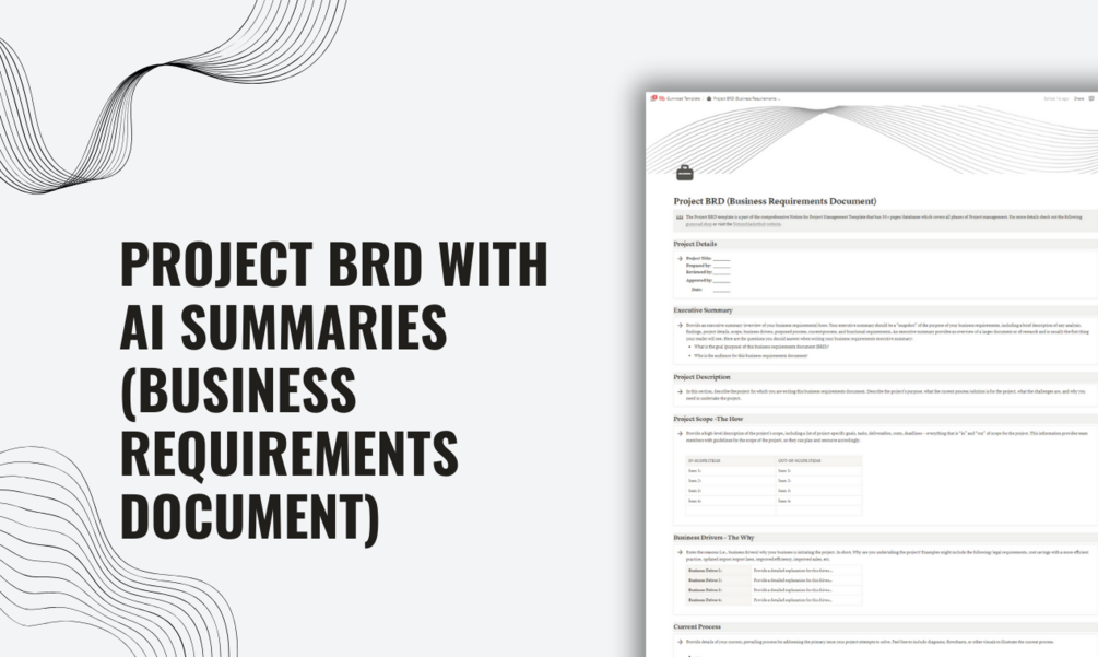 Are you ready to take your projects to the next level ? Say hello to streamlined project management with our BRD (Business Requirements Document) template, a key component of the ultimate project management toolkit in Notion.